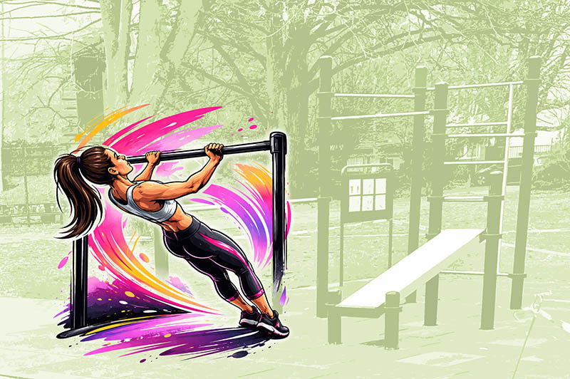 Damit sind Übungen wie Ausfallschritt, breite und enge Klimmzüge, Stützbeuge, Barrenstütz (Dips) und Beinheben möglich.