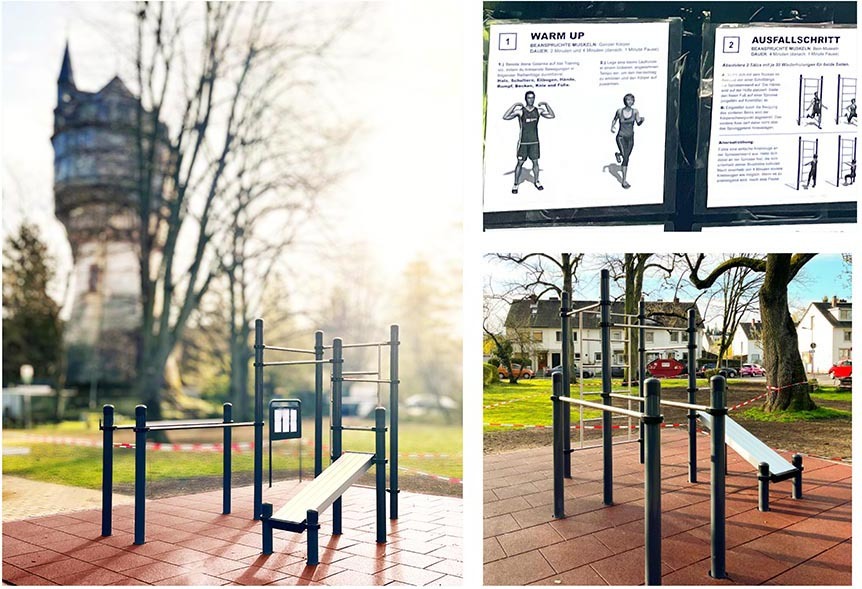 Kinder, Jugendliche und Erwachsene können ab sofort auf rund 40 Quadratmetern mit ihrem Eigengewicht an Klimmzugstangen, Parallelbarren, Reck, Schrägbank und Sprossenwand ihre Muskeln trainieren!